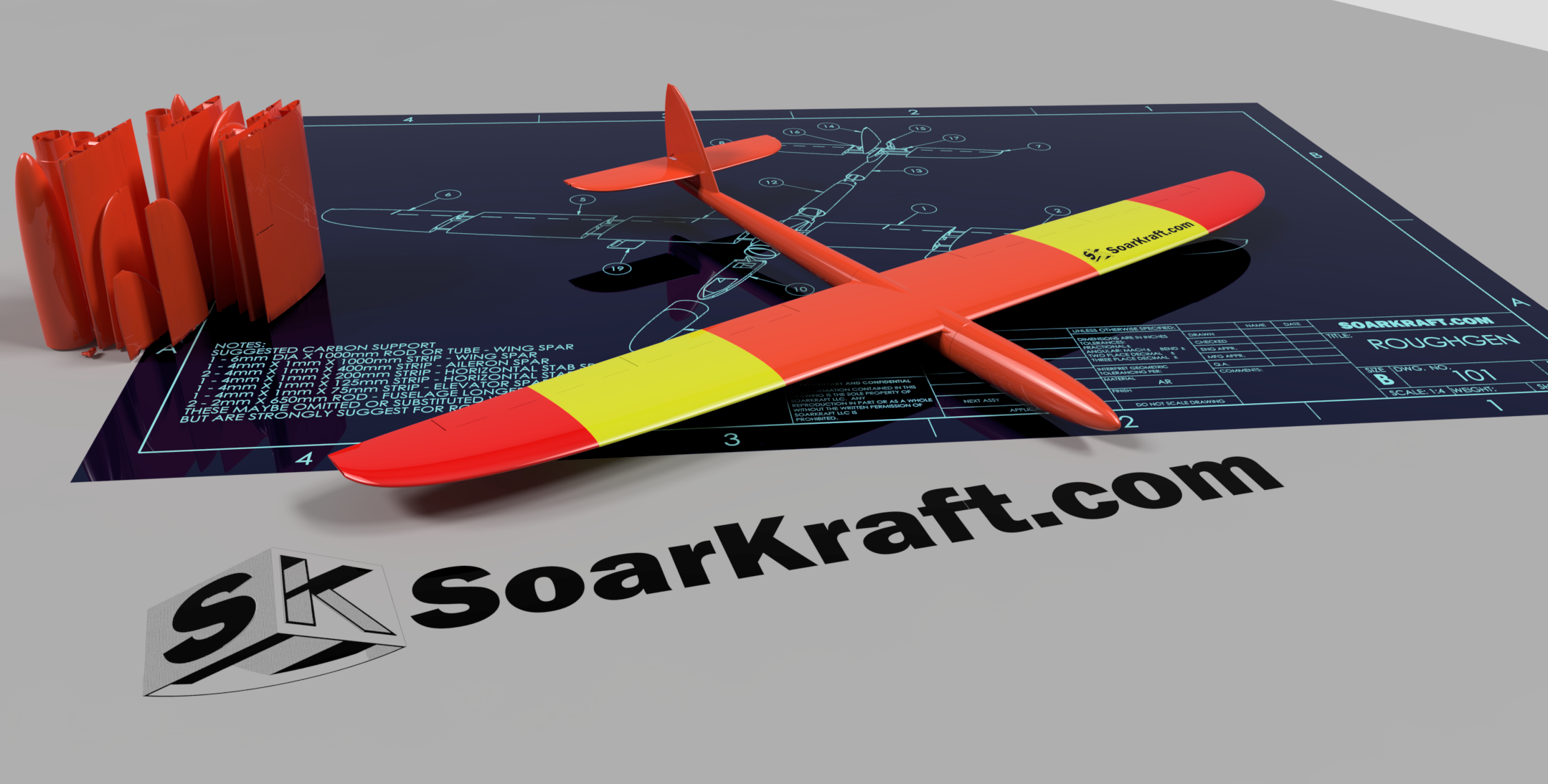 Easy to print, easy to build and fun to fly. SoarKraft designs are also full featured for less parts, integrated control surfaces and fit common components.