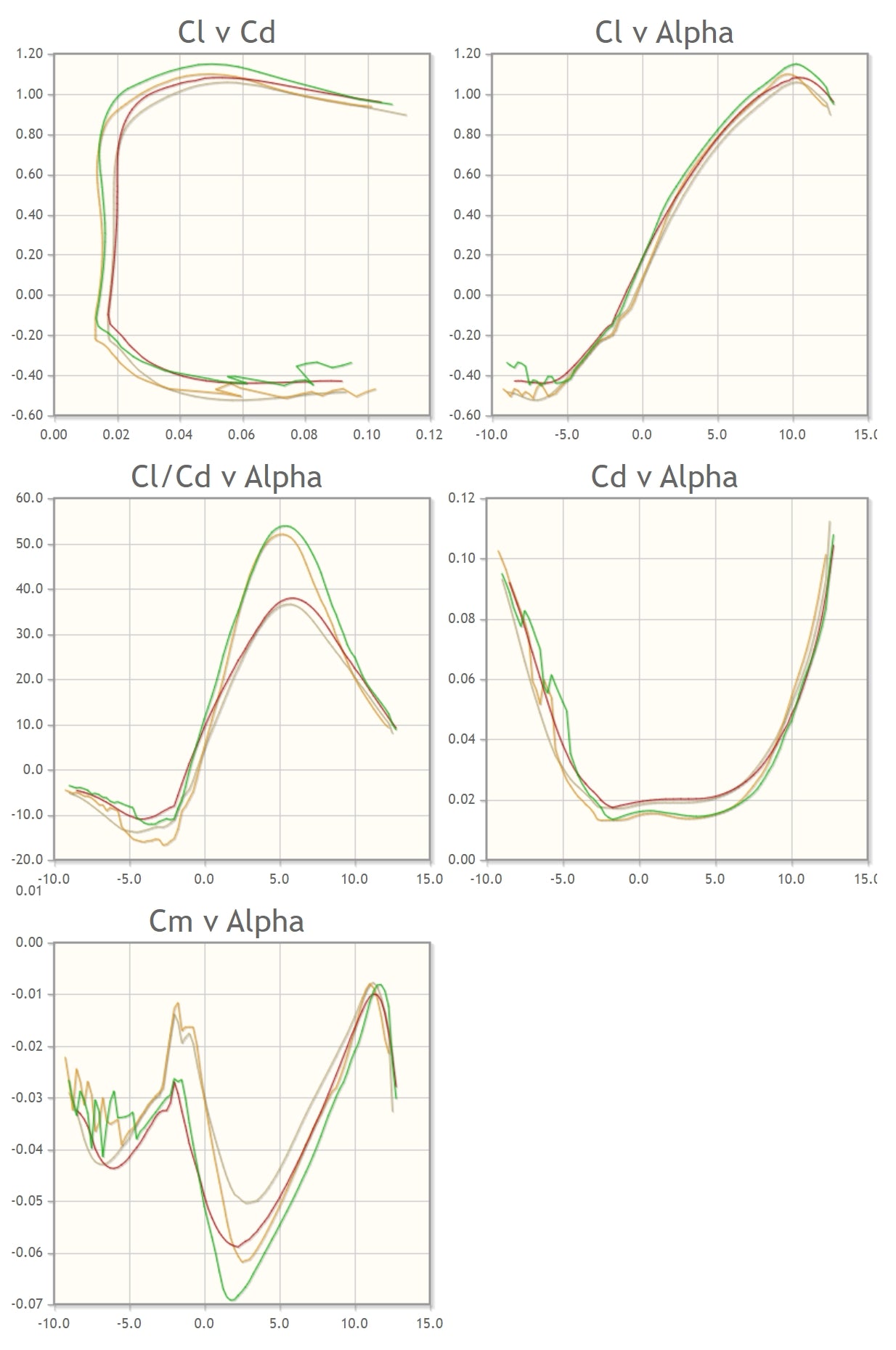 Below are the polar plots for these two airfoils at Reynolds numbers 50K and 100K.