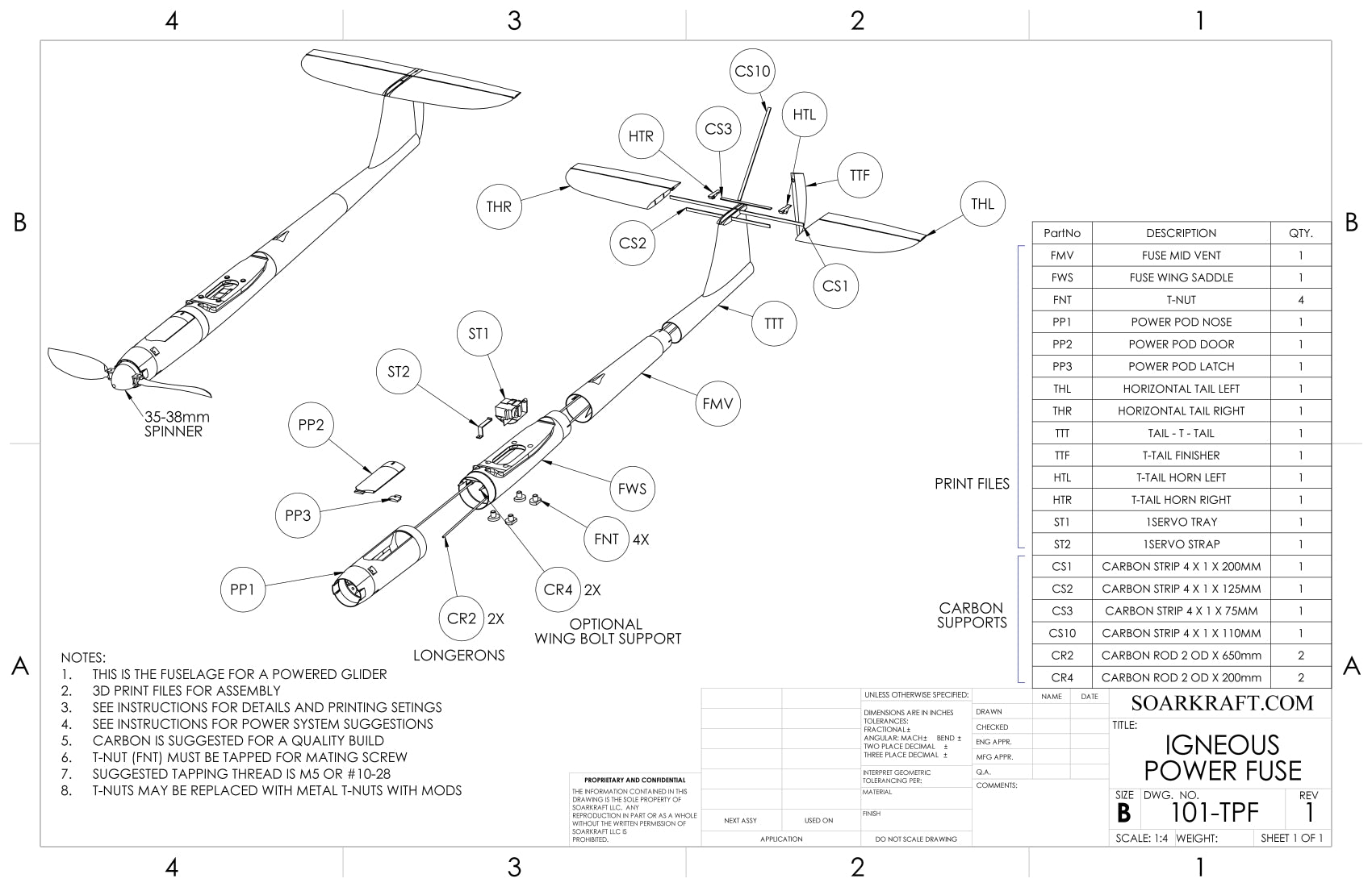 Update - v3c - fuse tail changes for better pushrod path and better printing, added LW power pod supplement for foaming LW-PLA.