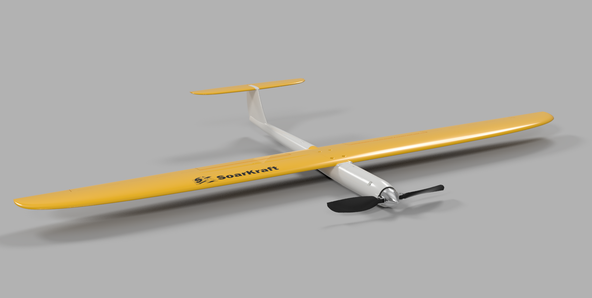 Update - v2c - improved tail surfaces for larger area, big control surfaces, longer control horn and straighter pushrod. Added extra carbon channels in wing saddle for more carbon support if desired.