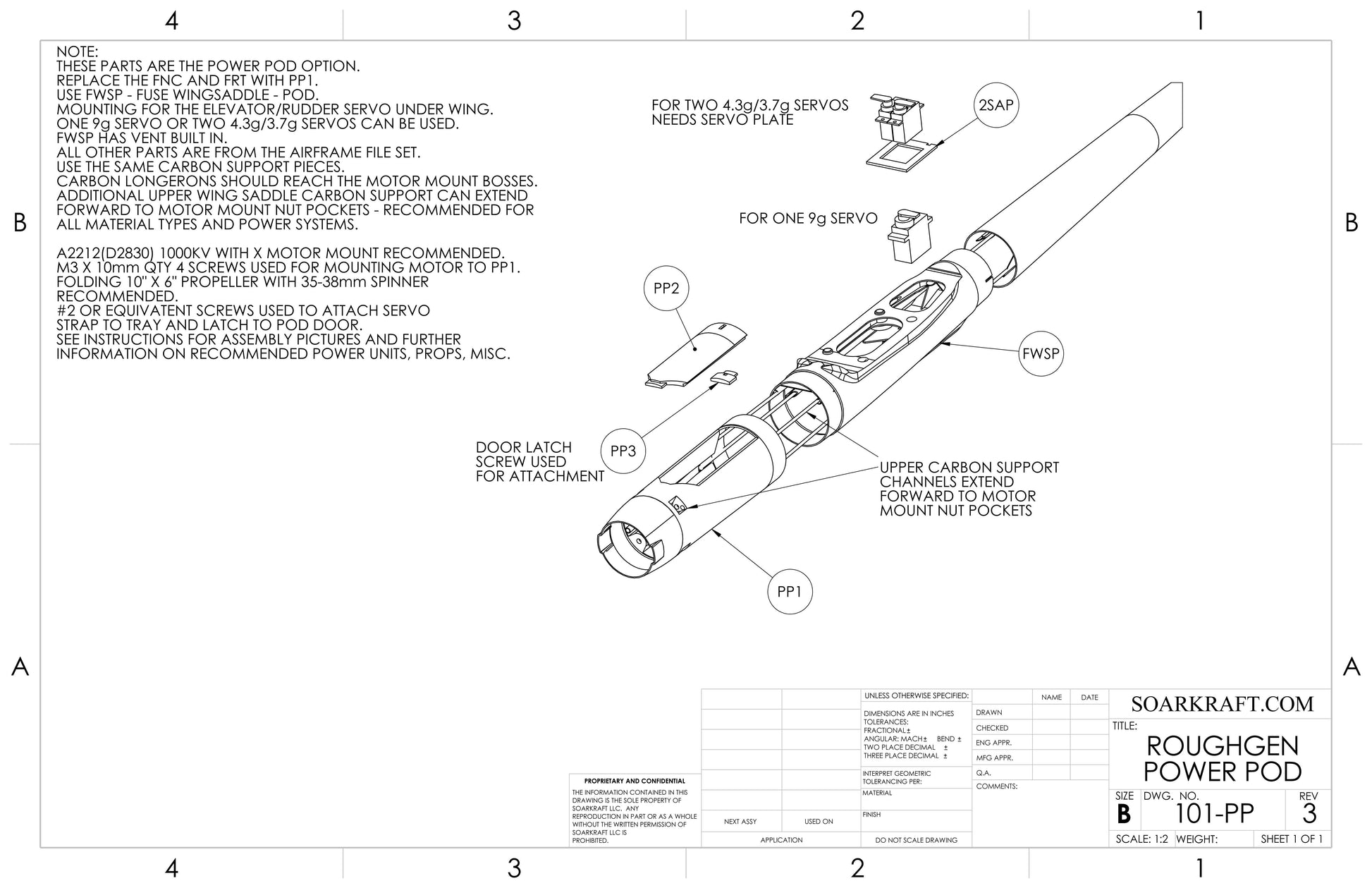 Original - This power pod carries more than enough power to launch your model right out of your hand, giving pilots without access to a slope or light wind days the enjoyment of power assist. With 5-15 minute flight times on a 1000mAh 3S lipo, climb fast and enjoy gliding around. Designed to use readily available and inexpensive parts, thanks to those drone guys, a complete power system is less than $50. However higher power motors, bigger higher pitch props will make this airframe into… well, lets just say it has potential…. Power Pod is designed with Down and Right Thrust angle for level flight with or without power, but may require some added shimming for different tails or propeller selection.